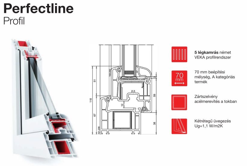 Kétrétegű üvegezés Ug=1,1 W/m2K